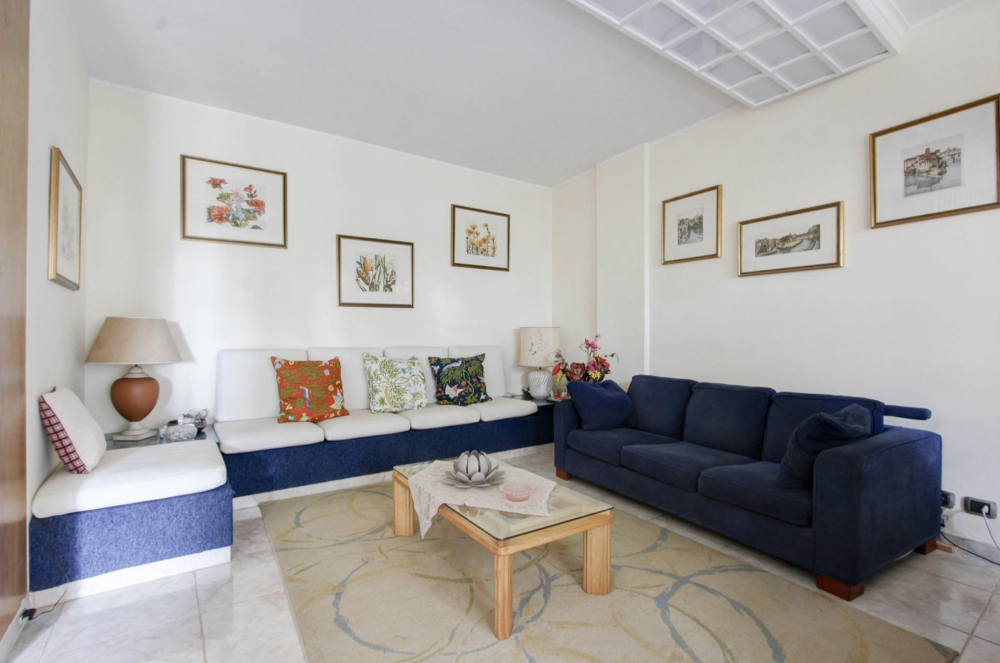 Ha un ampio ingresso, soggiorno con accesso al terrazzo di 8 mq, sala da pranzo, cucina con balcone, 3 camere da letto, di cui una con terrazzino e doppi servizi.
