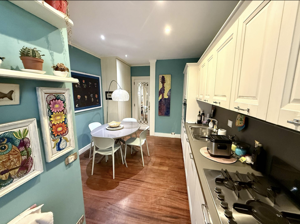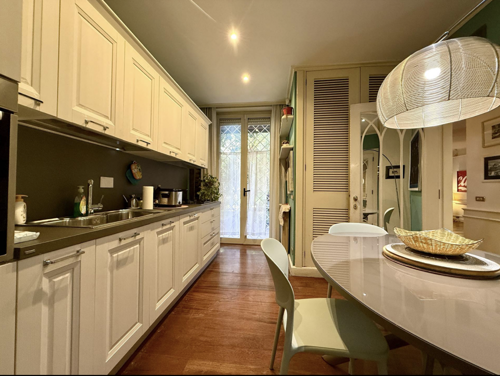 L'appartamento è composto da un accogliente soggiorno con accesso diretto al grande privato, perfetto per momenti di relax all'aperto. La cucina, funzionale e spaziosa, ospita un tavolo con 4 posti rendendola assolutamente abitabile.