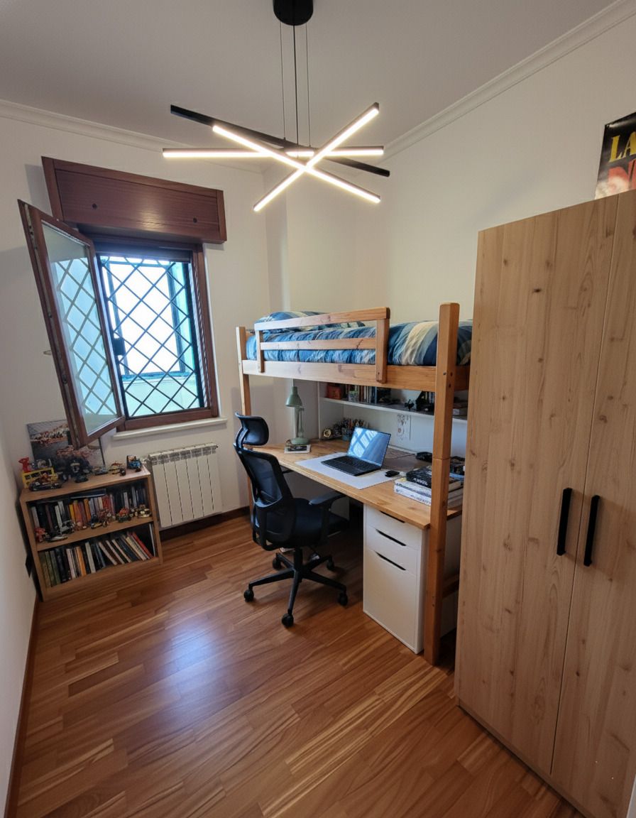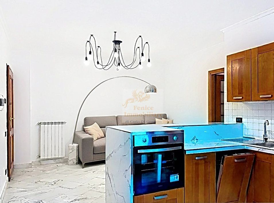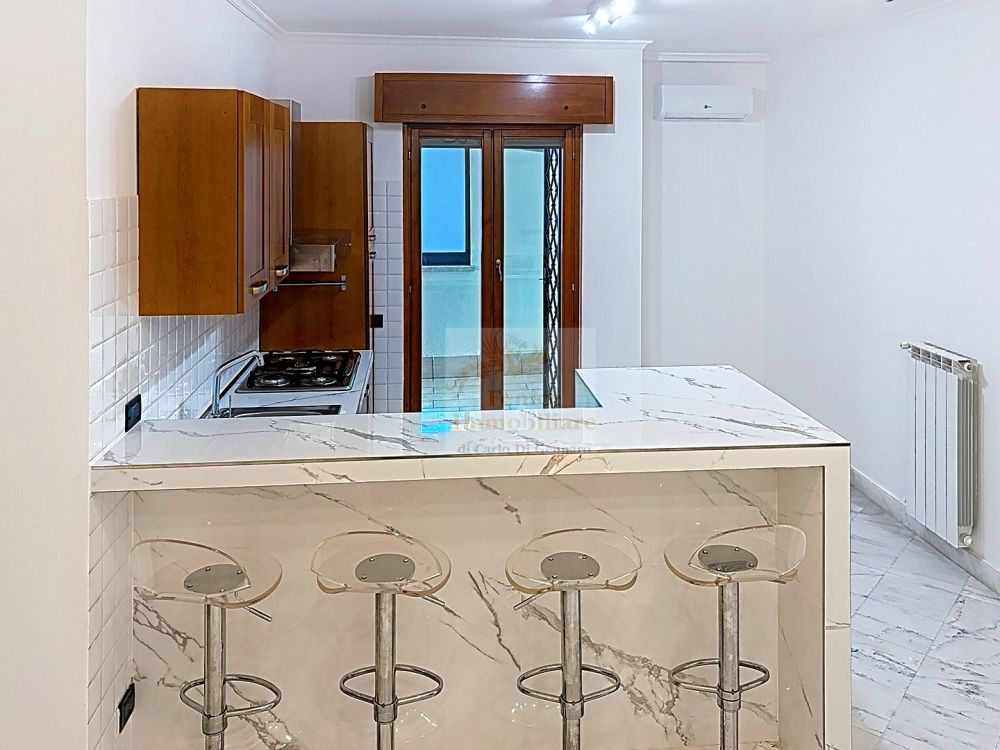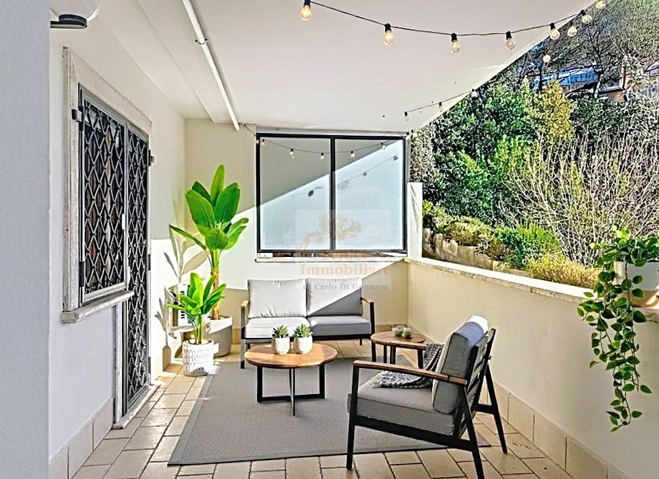 L'immobile è stato oggetto di ampia ristrutturazione, è composto di soggiorno climatizzato, con cucina in ciliegio a vista e accesso al terrazzo, disimpegno, camera da letto matrimoniale con aria condizionata e accesso al terrazzo, altro vano con finestra utilizzabile sia come cameretta che come studio, bagno con finestra. Completano l'offerta un ampio terrazzo di circa 25 mq esposto a sud, un locale tecnico utilizzabile come cantina e la possibilità di parcheggio in area condominiale non assegnata.